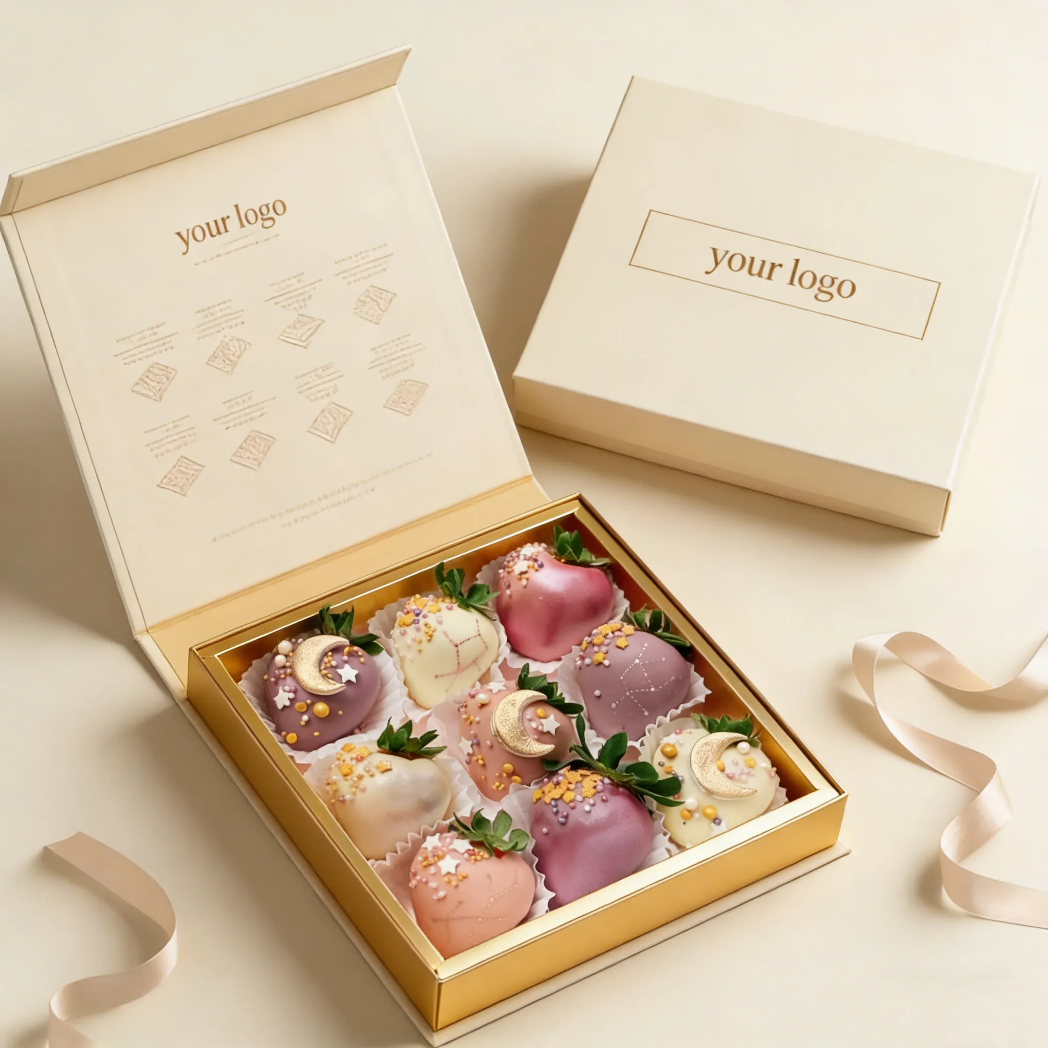 Food-Safe Custom Divider Inserts: Each box includes a food-safe, compartmentalized insert tailored to neatly organize and protect chocolates, truffles, and confections, keeping them fresh and visually appealing.