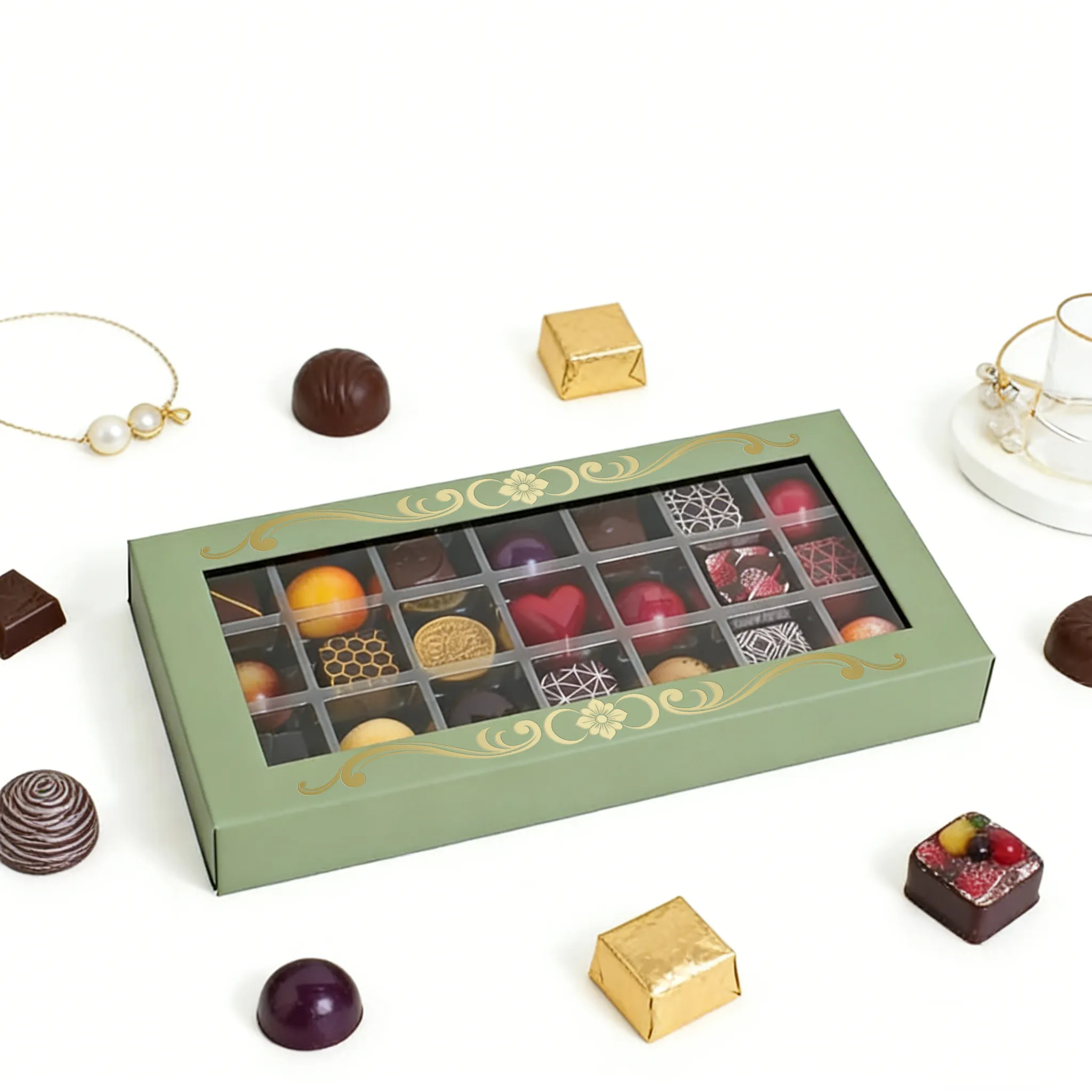Welcome to purchase our custom chocolate packaging boxes. Discover our elegant windowed collection, perfect for artisanal chocolates, truffles, and sweet treats. Featuring a crystal-clear viewing window, gold-accented interiors, and food-safe divided inserts, it’s tempting visibility and secure presentation combined. From size and soft pastel hues to custom gold foil patterns, logos, and tailored compartment layouts, it is fully customizable to match your brand. Let us help your confections stand out, beautifully and deliciously.