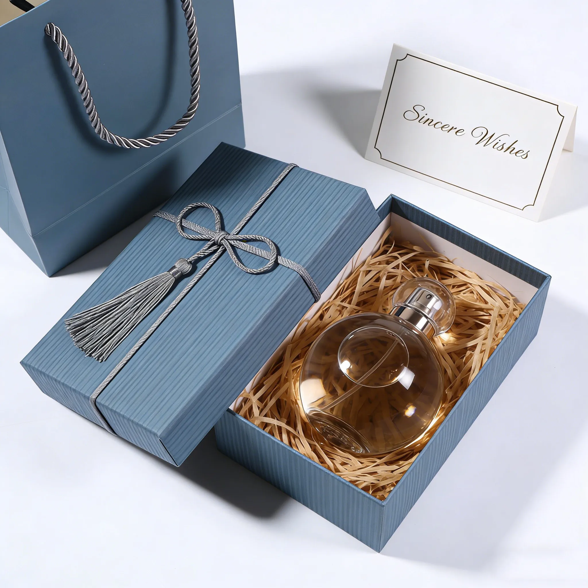 Welcome to purchase our custom perfume packaging gift boxes. Discover our elegant lid-and-base collection, perfect for luxury fragrances, scent sets, and premium gift assortments. Featuring premium satin or shredded filler inserts, decorative ribbon accents, and coordinated gift bags, it’s sophisticated presentation and secure bottle protection combined. From size and soft hues to custom patterns, gift tags, and tailored cushioning, it is fully customizable to match your brand. Let us help your fragrance line stand out, beautifully and memorably.