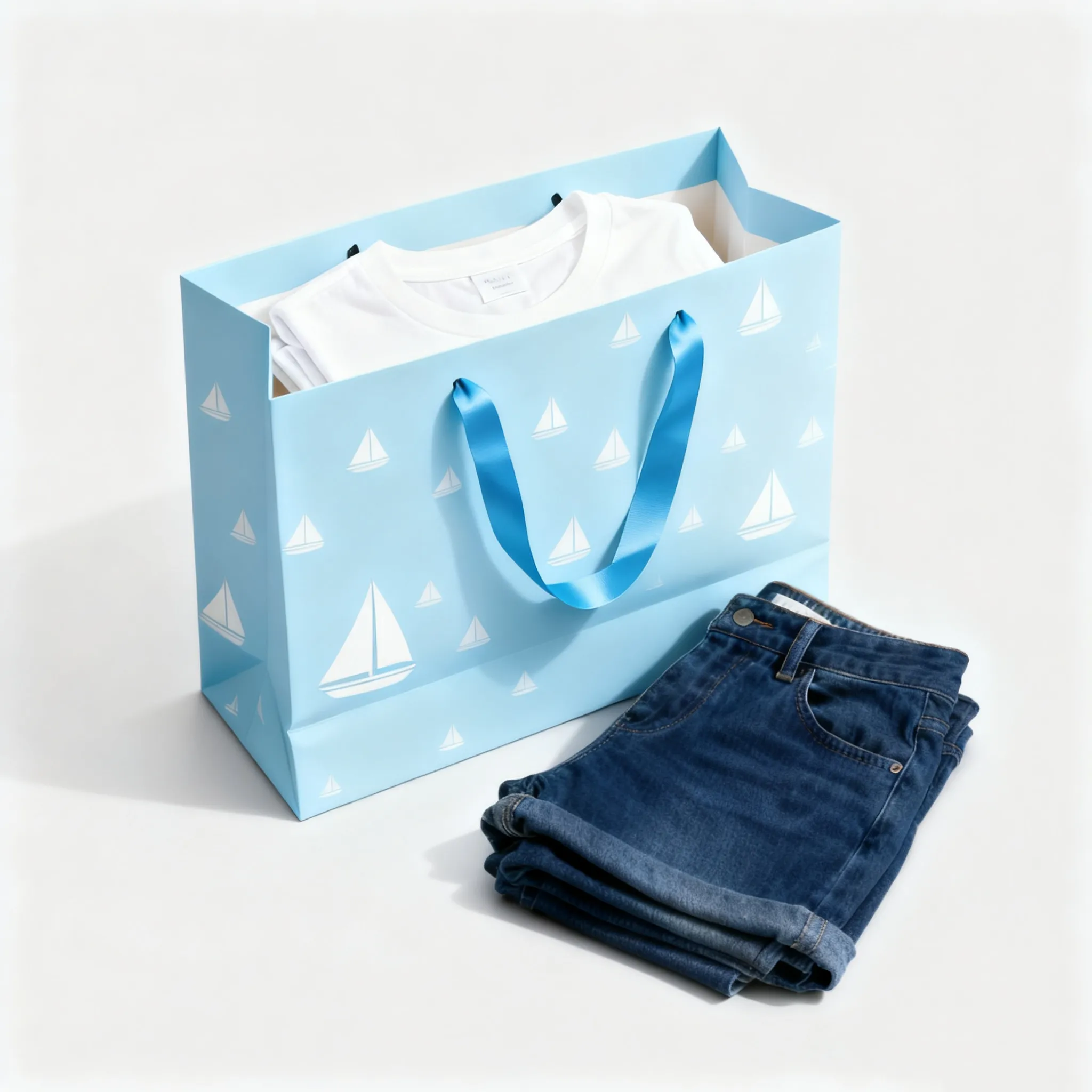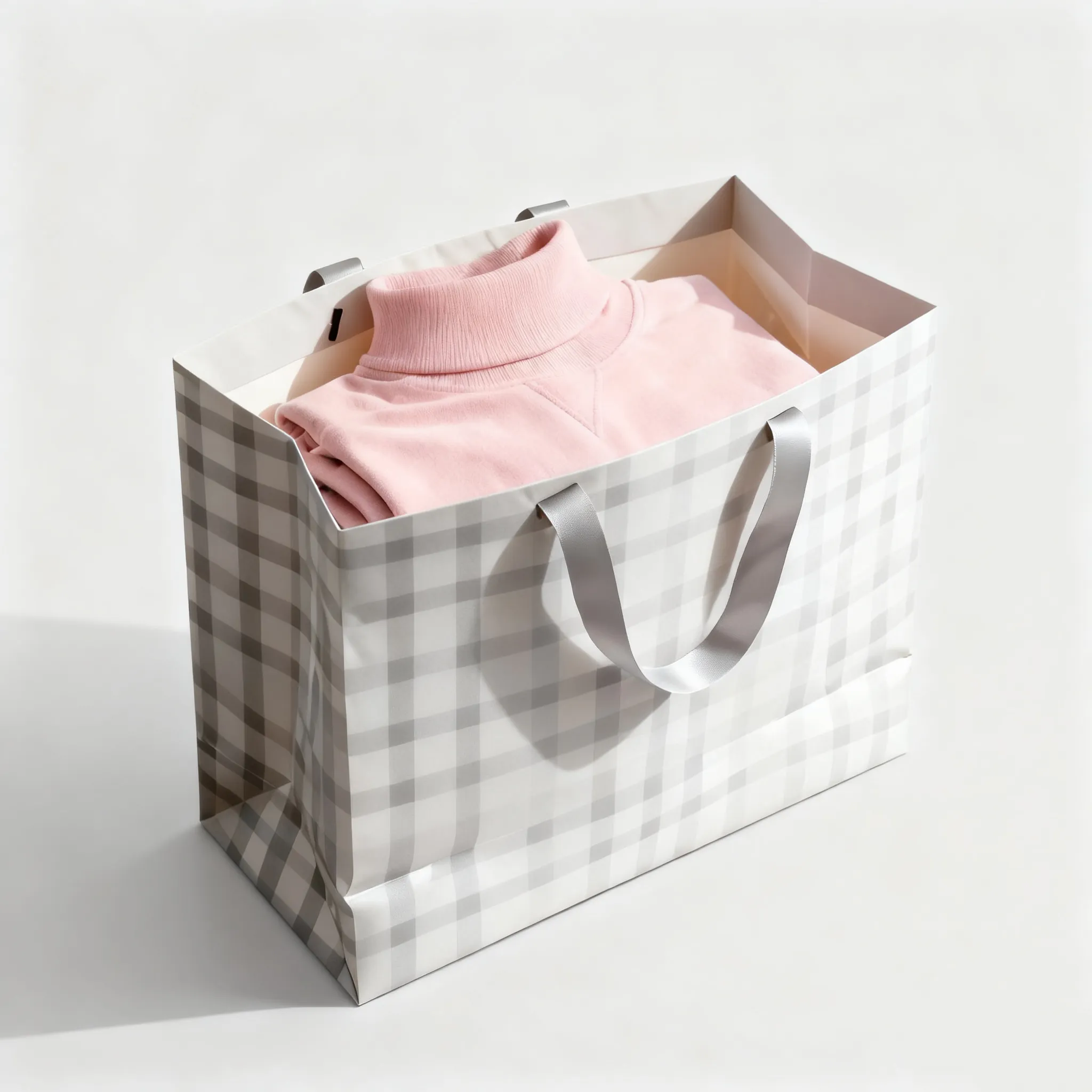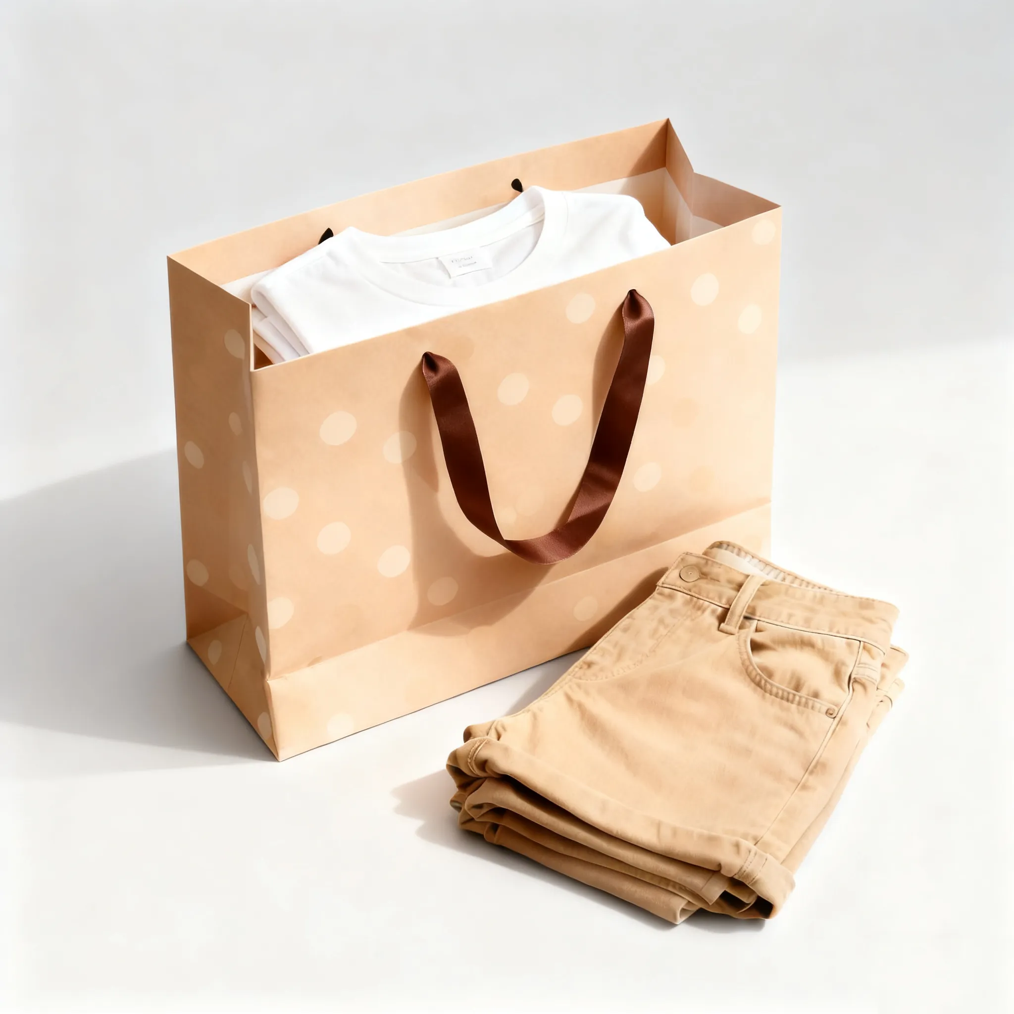 Ideal for apparel packaging: The custom clothing paper bag is a fashionable and structured profile suitable for storing ample clothing, accessories, or gifts. It enhances the apparel brand packaging.