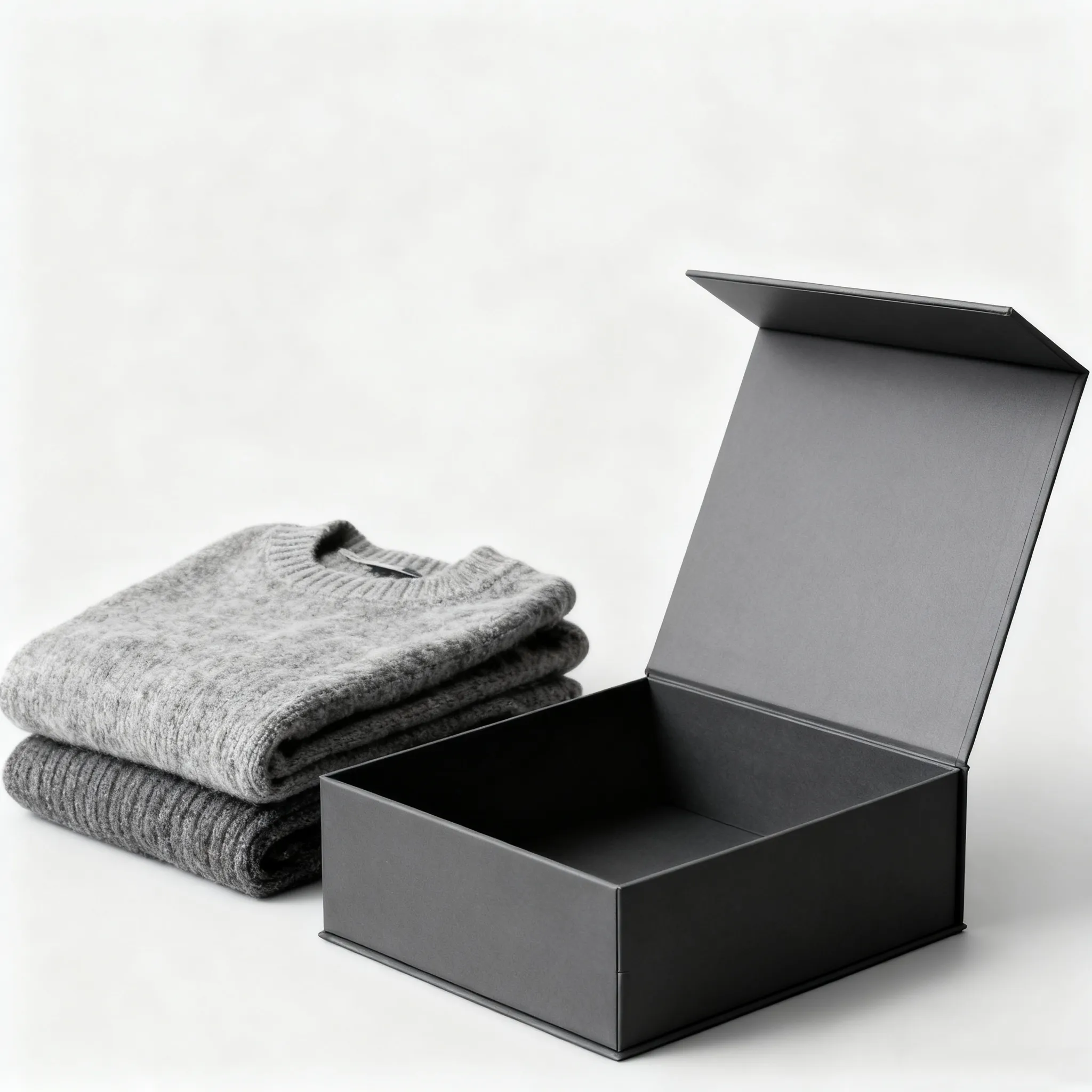 Welcome to purchase our apparel gift boxes wholesale. This premium magnetic clothing gift box is made from rigid cardboard and features a magnetic opening and closure that is both sturdy and functional. The perfect gift box, great for coats, jackets, shorts, T-shirts, hoodies, etc. This box is a stylish yet functional way to store clothing to give to family and friends. Let us help your clothing packaging products stand out, beautifully and efficiently.