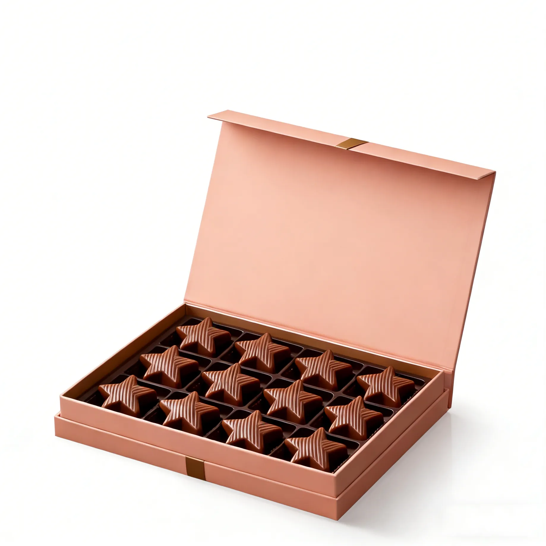 Magnetic Seal Flip-Top Structure: These wholesale chocolate candy boxes integrate a hidden magnetic seal into their flip-top design. The lid clicks securely shut for a sleek, seamless look, while the smooth lift-open motion enhances the unboxing experience.