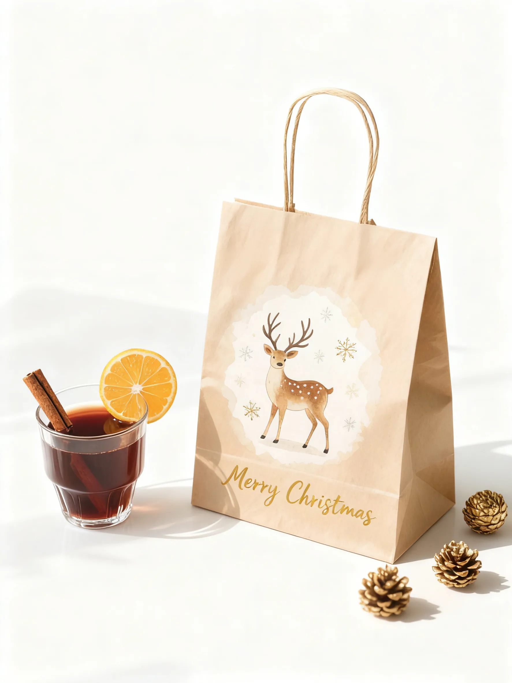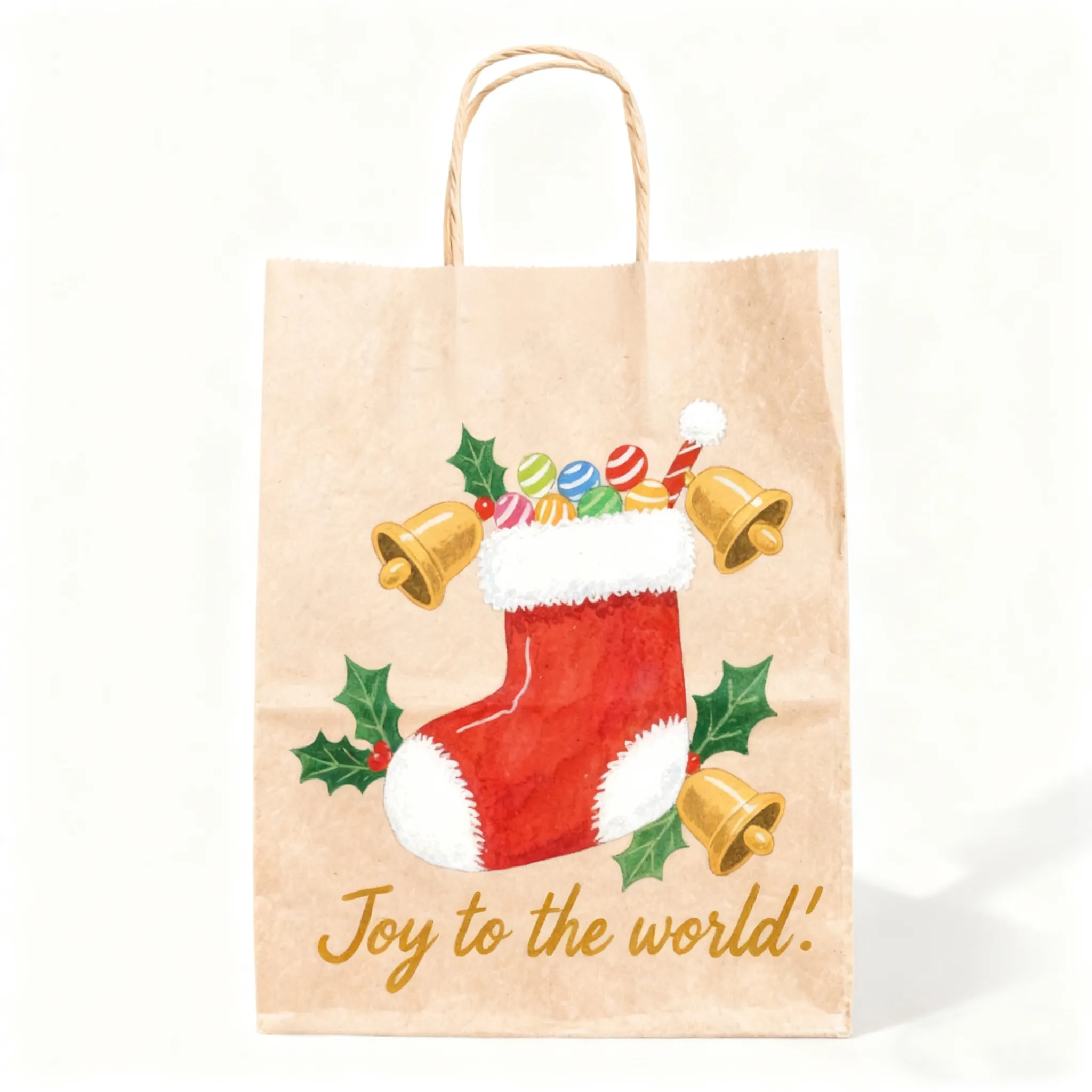 Added Strong Handles: Our custom kraft paper bags come with a fitted rope handle or twisted handles, which offer a comfortable and break-resistant grip, making it easy to carry gifts, candies, toys, and other holiday items.