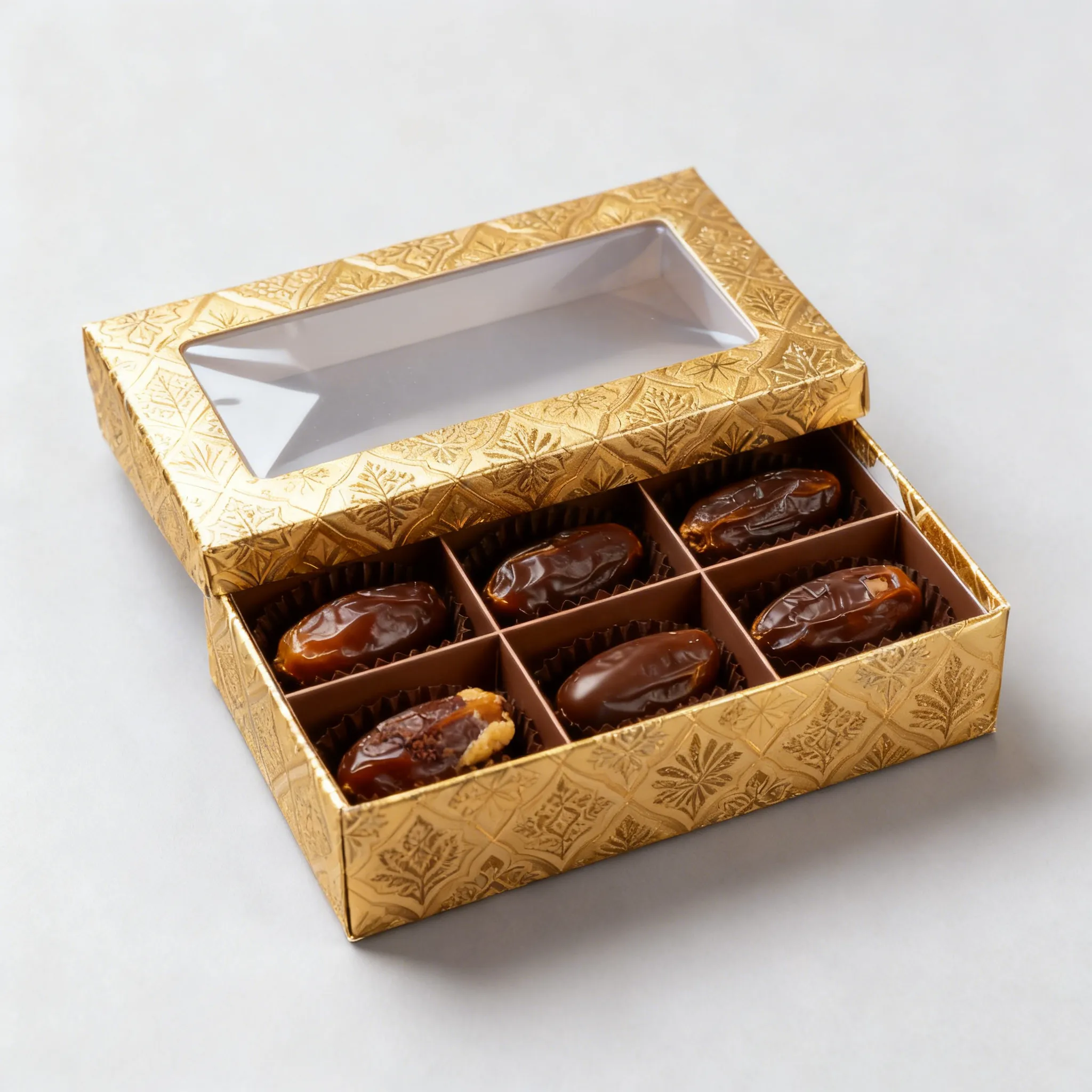 Clear Window Display Feature: These window gift boxes wholesale feature a transparent window that showcases contents (like dates or chocolates) upfront, adding an enticing visual element for gifting.